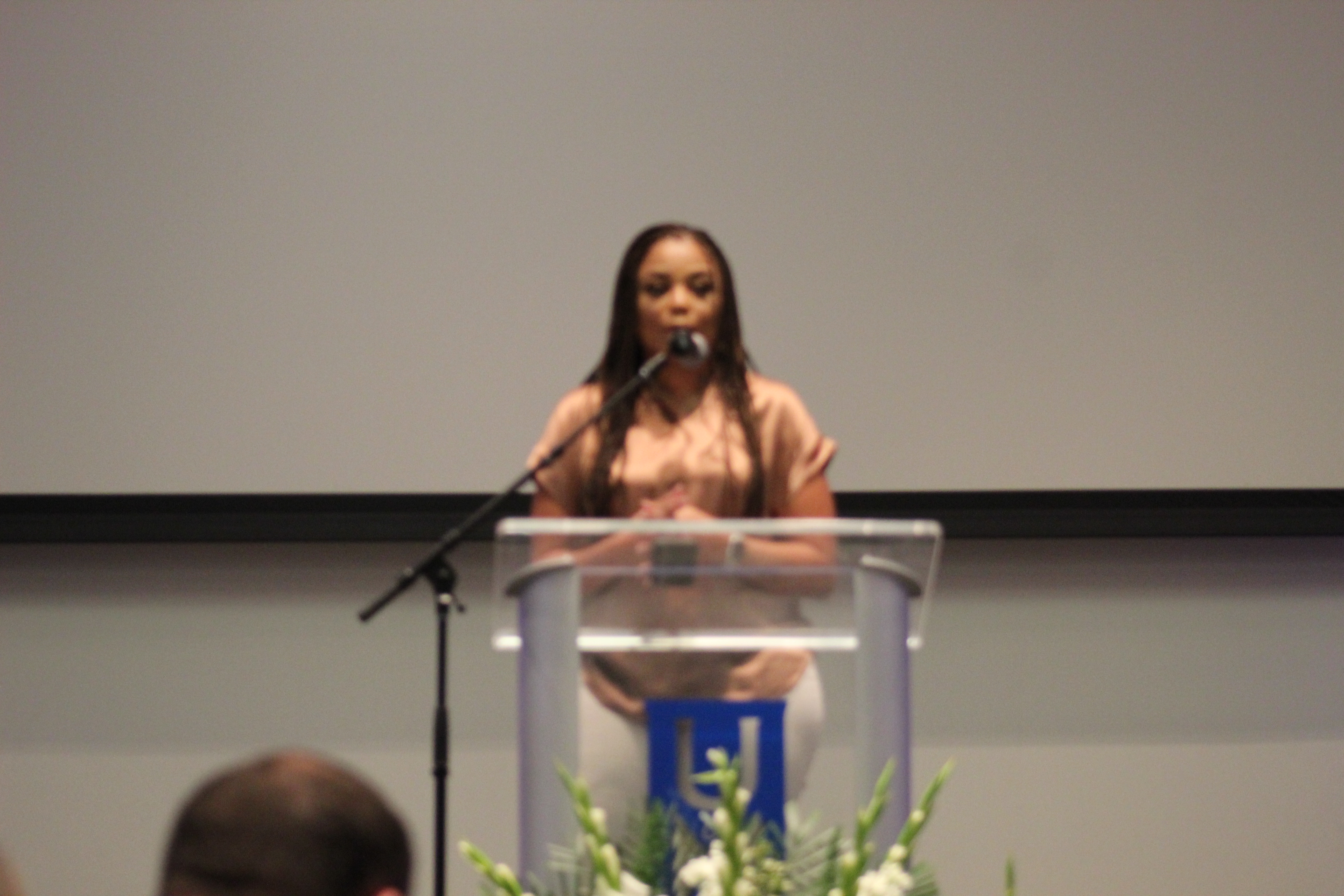 Jemele Hill, staff writer for the Atlantic and former ESPN personality, spoke to over four hundred people in the UC Ball Room on the University of Memphis campus. The focus of her speech was the intertwining of sports, race and politics.